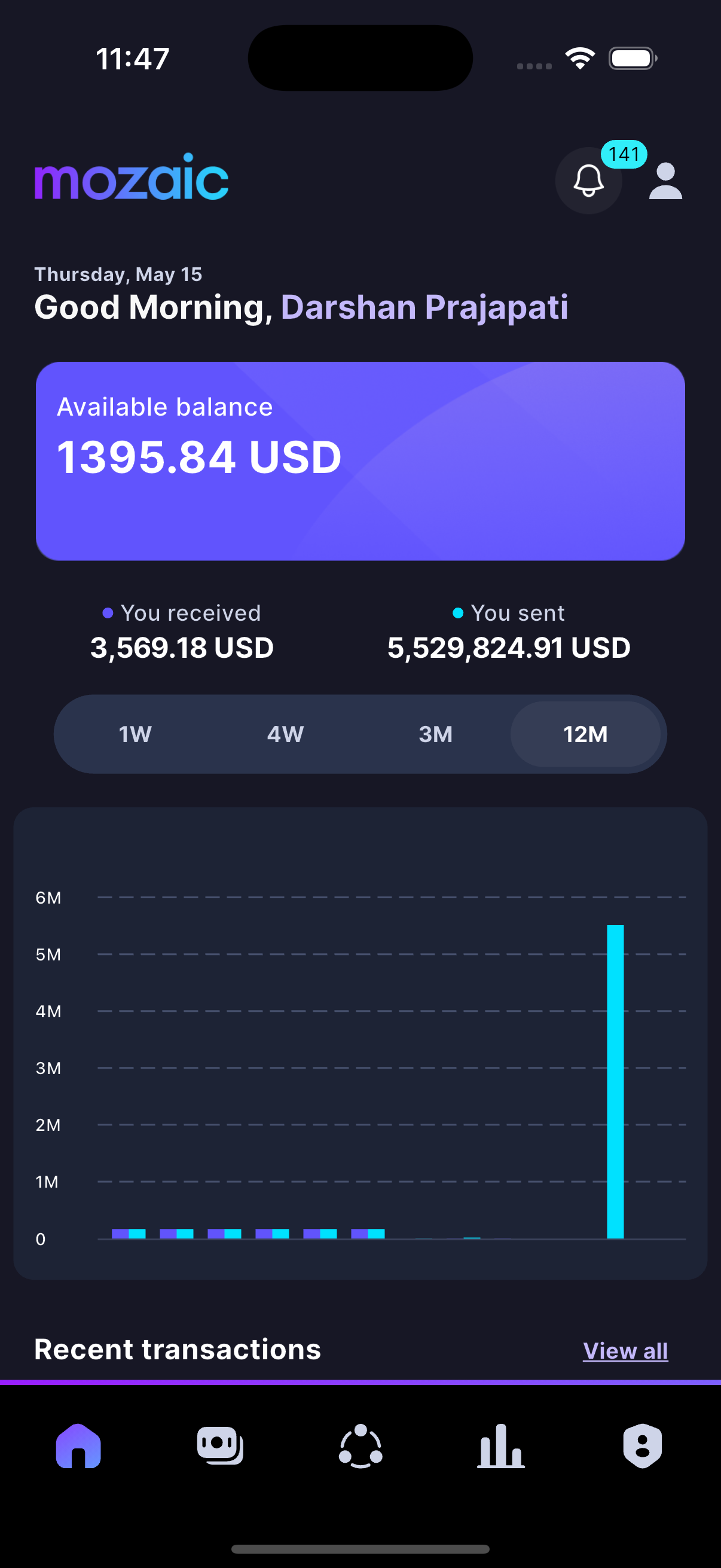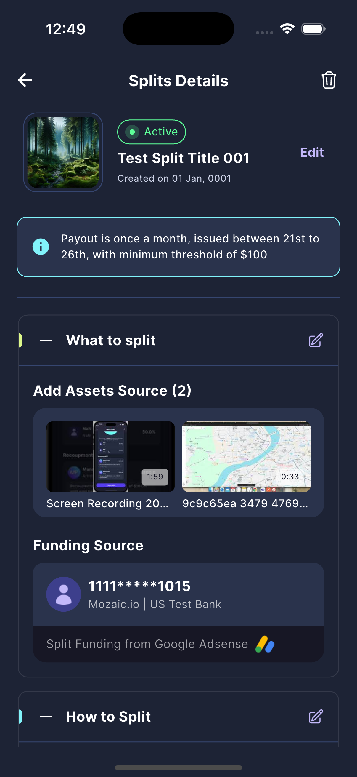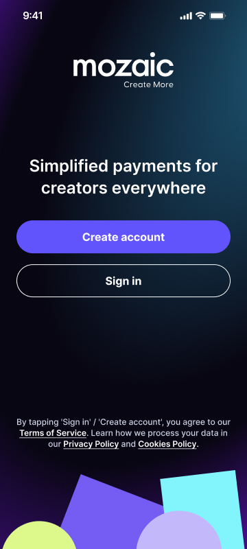 The Mozaic mobile app is designed to offer a seamless financial experience for both individual users and businesses. Users can easily sign up by selecting their account type and gain access to a range of core features. The app supports sending and receiving payments between users, making peer-to-peer transactions quick and convenient. It also allows users to securely link their bank accounts, credit cards, or debit cards to facilitate smooth financial operations. Additionally, Mozaic includes a split creation feature with integrated YouTube functionality, enabling users to manage shared payments or revenue splits ideal for content creators and collaborators.